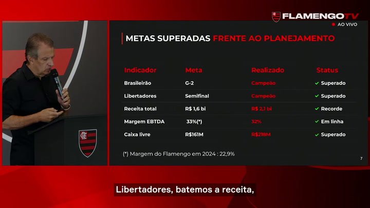 Presidente do Flamengo confirma receita recorde de R$ 2,1 bilhões em 2025