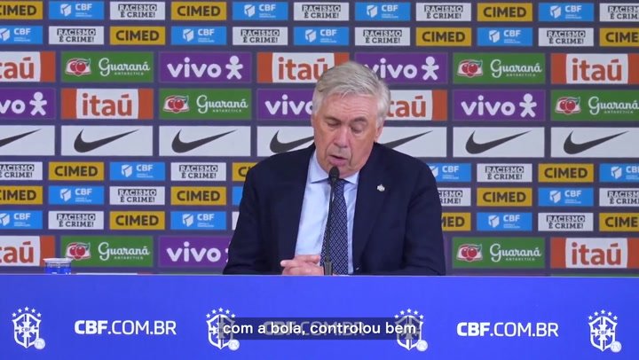 Ancelotti feliz pela vitória, desempenho e classificação do Brasil para a Copa