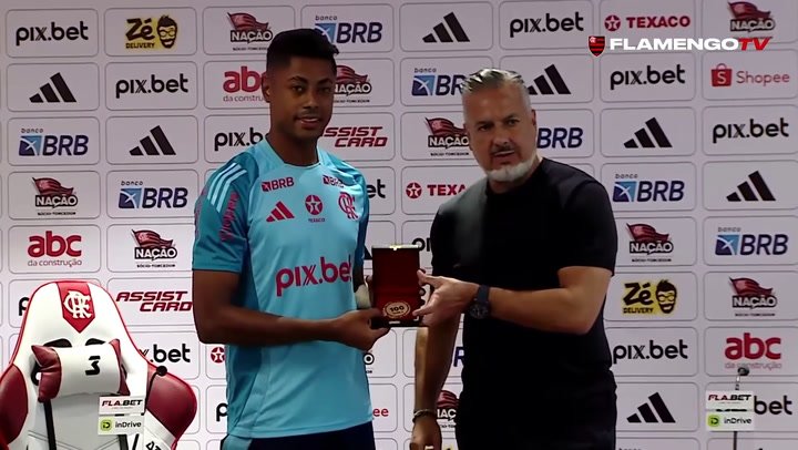 Bruno Henrique recebe homenagem por 100 gols pelo Flamengo