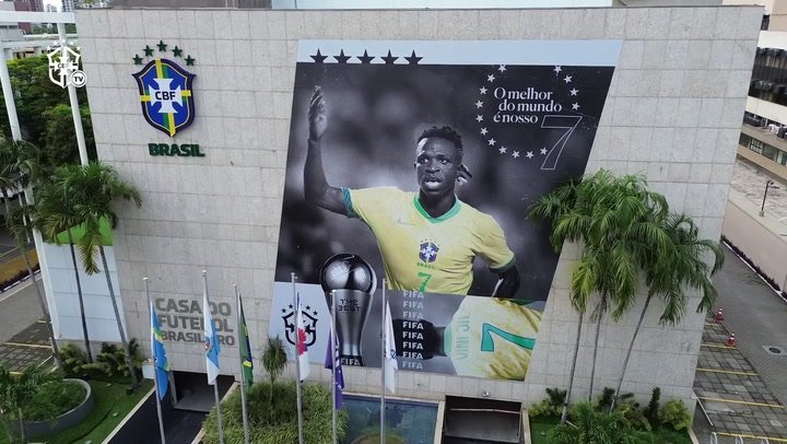 Melhor do mundo: Vini Jr é homenageado com mural na sede da CBF
